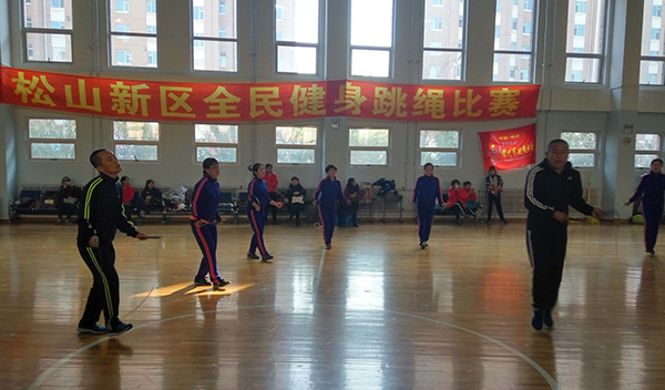 为了丰富区各社区、企事业单位业余体育文化生活,增强体质,促进全民健身,增进交流,营造和谐、健康、向上的工作氛围,10月26日下午,松山新区工会,组织开展了全民健身跳绳比赛,共有26个社区企事业单位参加。共计一百多人。跳绳比赛设有单人赛、团体赛两个项目,不限年龄,不限男女,单人赛每个参与队限两名队员,以一分钟内单跳个数的数量多少为个人总成绩,团体赛由八名队员组成。两名队员摇绳,6名队员依次从绳中穿过,以两分钟内6人跳过次数数量总和为团体最后总成绩。分别决出一二三等奖,六名个人,六个团体。丰富的竞赛模式,充分的调动了参与队比赛的热情。比赛刚开始,现场的气氛就显得非常热烈,每一位参加比赛的队员都热情高涨。首先进行的是扣人心弦的团体跳绳比赛,只见选手们一个接一个跟着甩绳者的节奏,穿梭在长绳中,灵活的跳跃如同五线谱上的音符,让选手和观众们都沉醉在跳绳带来的欢乐中。在随后举行的个人跳绳比赛中,选手们精神抖擞,严阵以待,随着裁判员的一声令下,脚尖随着绳子的节奏轻盈落地又迅速弹起,犹如小天鹅在翩翩起舞。在比赛中现场不时的响起欢笑声、加油声,跳绳擦过地面发出清脆的声音,伴着响亮的欢呼声和热情的掌声,把现场的气氛推向一次又一次的高潮。