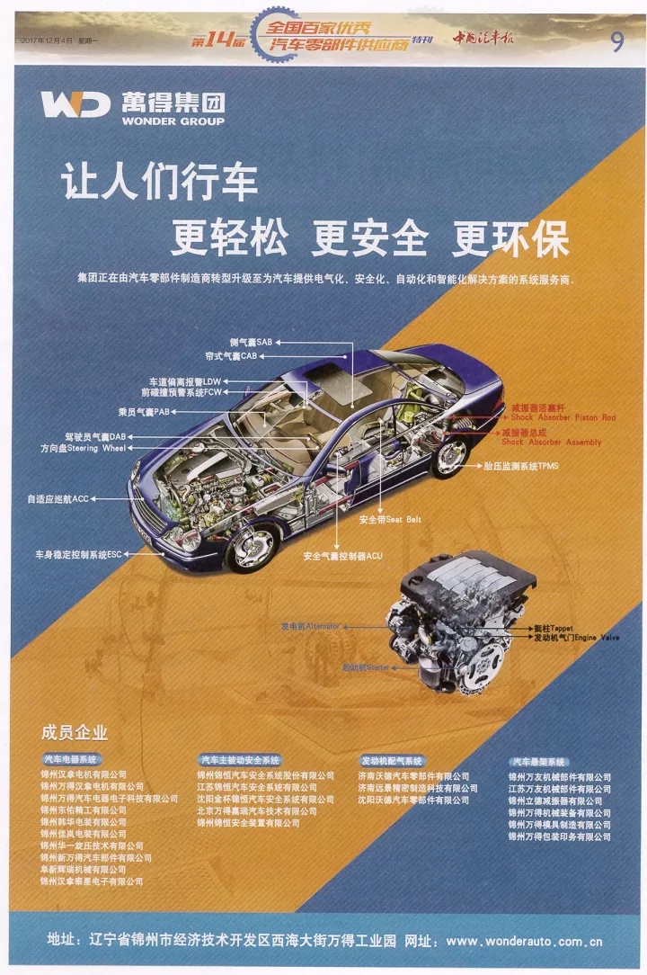 12月7日,由《中国汽车报》社主办的“2017年中国新能源汽车发展论坛暨第十四届全国百家优秀汽车零部件供应商颁奖典礼”在江苏如皋如期举行。人生就是博尊龙凯时集团四家核心企业分别入选各自细分领域的优秀供应商(锦州汉拿、锦州锦恒-优秀汽车电子电器供应商,济南沃德-优秀发动机配件及排放系统供应商,锦州万友-优秀行驶系统供应商)。这也是自2014年来四家企业连续四年获此殊荣。