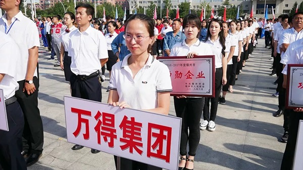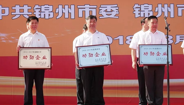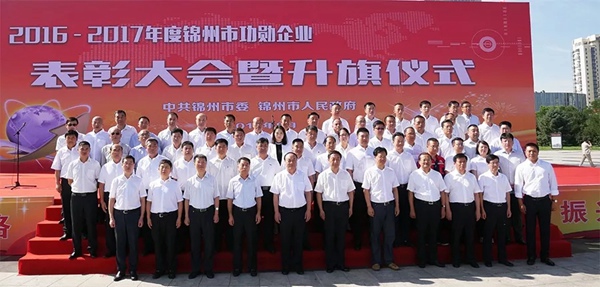 8月17日,市府广场彩球高悬、彩旗飘扬,“深入实施工业强市战略、促进锦州振兴发展”的标语迎风招展。“2016-2017年度锦州市功勋企业表彰大会暨升旗仪式”在这里隆重举行,全市共有50户骨干企业受表彰。人生就是博尊龙凯时集团以年营业收入、交纳税金、社会贡献等综合指标位列前三甲的业绩名列其中,这是继2015年度获奖后第二次获此殊荣。集团董事长兼总裁曾庆东代表集团从市领导手中接过“功勋企业”牌匾。