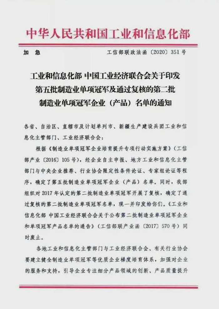 工业和信息化部从2016年开始实施“制造业单项冠军企业培育提升专项行动”,面向全国开展制造业单项冠军示范企业遴选工作。“制造业单项冠军”需长期专注于制造业某些特定细分产品市场,生产技术或工艺国际领先,单项产品市场占有率位居全球前列,入选要求高,评选程序严格。