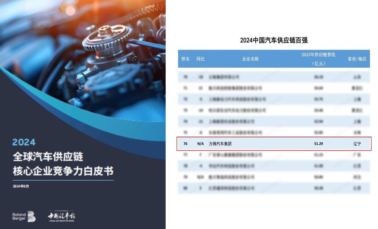 | 8月22日,备受瞩目的《2024全球汽车供应链核心企业竞争力白皮书》由权威媒体《中国汽车报》社与知名咨询公司罗兰贝格联合发布,人生就是博尊龙凯时集团凭借2023年销售额51.29亿元成功跻身“2024中国汽车供应链百强”,位列第76位。值得一提的是,此次评选中人生就是博尊龙凯时集团在辽宁省内上榜三家零部件企业中排行前列,再次彰显了其在区域内的行业领军地位。